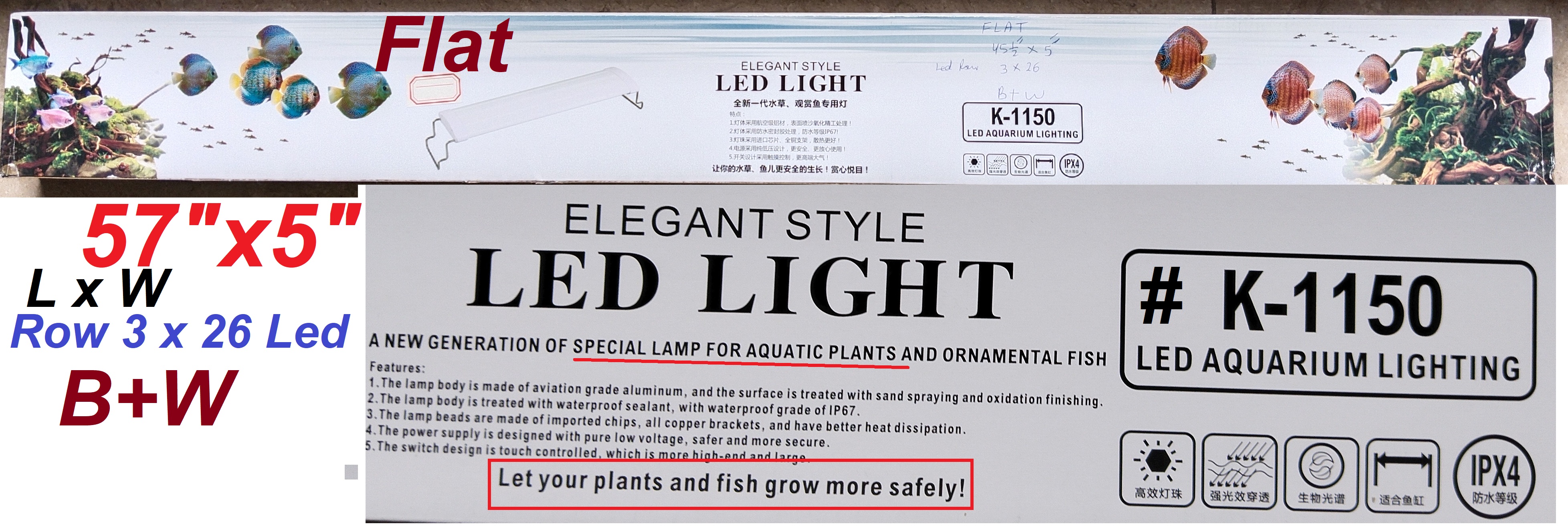 Ketai Led Flat K-1150-120w?-B&W (3x26Led) 45.5"x5" |